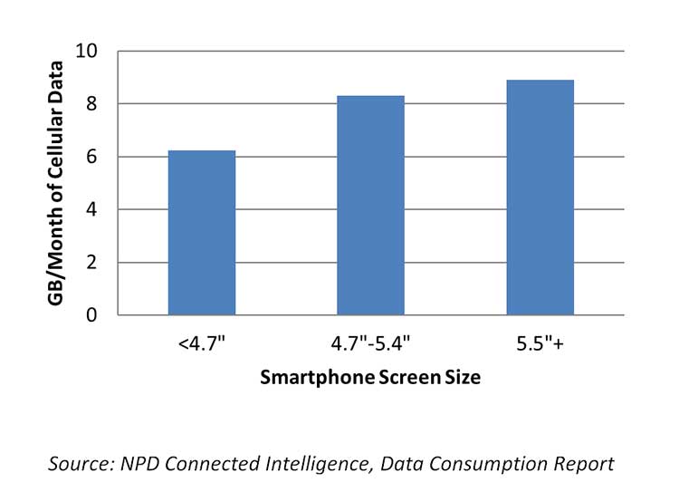 That said, the picture is not as rosy for carriers, as large screens put an extra burden on their networks. According to NPD Connected Intelligence’s Data Consumption report, smartphone screen size has a direct correlation to the amount of data used. During the first half of 2018, consumers using smartphones with a screen size of 4.7 inches or less used approximately 6 GB/month of cellular data. Monthly data usage jumped to 9 GB/month for users with a screen size of 5.5 inches or larger.